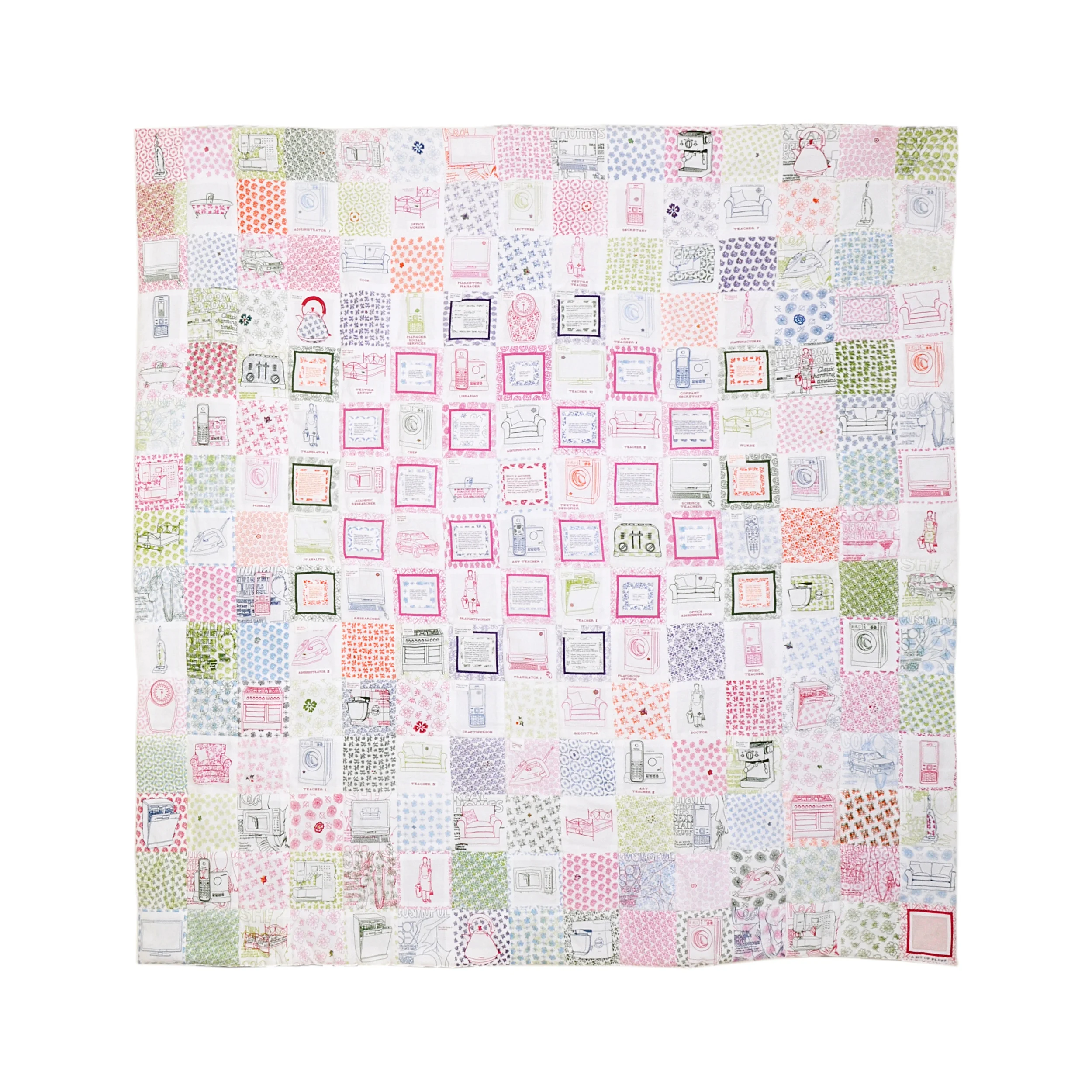 The research that Caren does before embarking on a piece of work is extensive, and key to the outcome. Before commencing ‘How Many Times Do I Have to Repeat Myself’, a quilt commissioned by the Victoria and Albert Museum for their landmark exhibition ‘Quilts 1700-2010’, Caren compiled a vast body of material comprising questionnaires, archive research and interviews. For Caren, ‘The practice is the embodiment of the research’. Professor Melanie Miller, Hand Stitch Perspectives